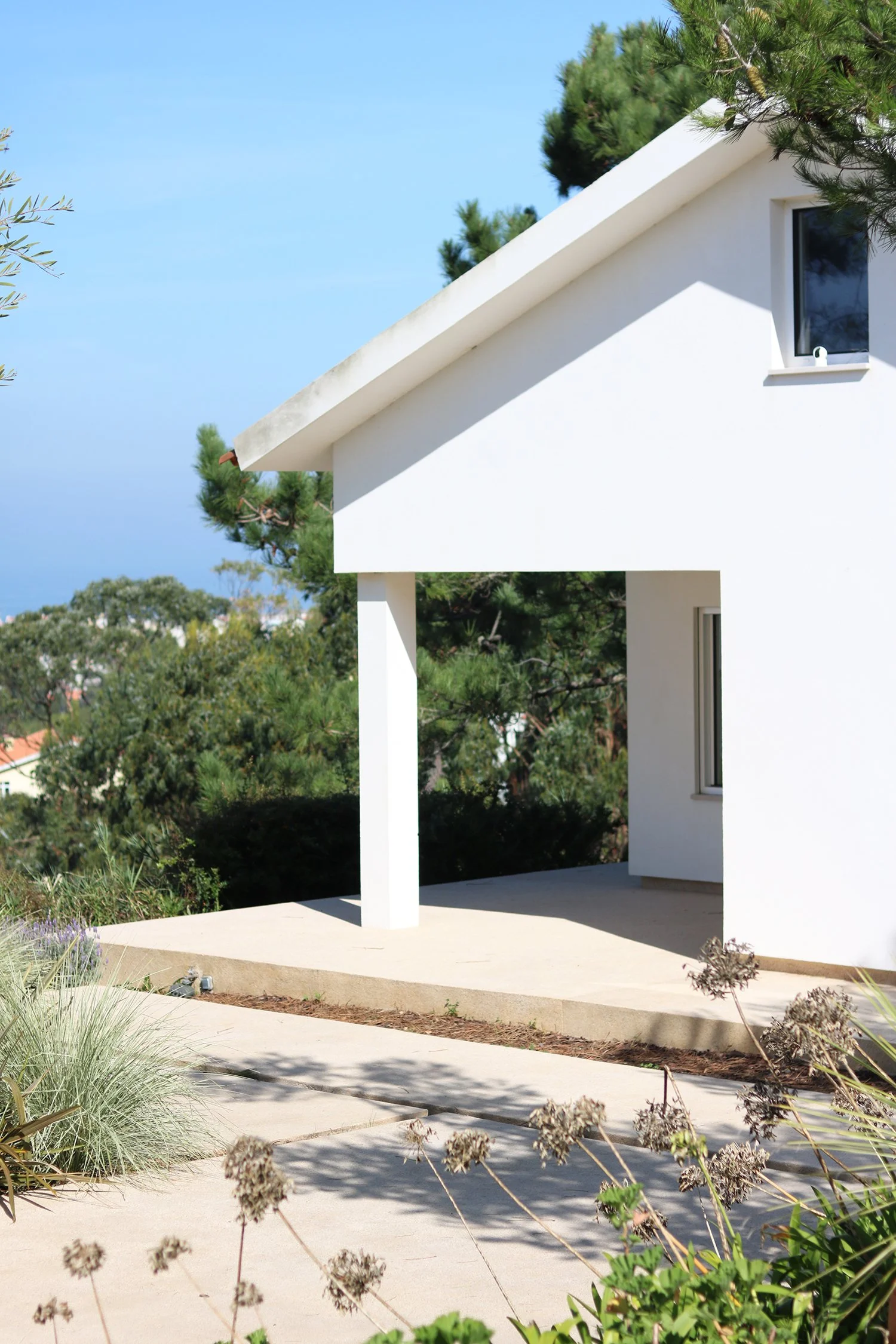 Com 90 m², este antigo T2 foi reorganizado em T3, com espaços fluidos e ligação direta ao exterior. O objetivo foi ampliar a perceção espacial e reforçar a presença da paisagem. O desenho do jardim e da piscina prolonga a mesma lógica de sobriedade e integração, resultando num espaço de veraneio depurado e sereno. With 90 m², this former two-bedroom house was reorganized into a three-bedroom dwelling, featuring fluid spaces and a direct connection to the exterior. The goal was to expand spatial perception and strengthen the presence of the landscape. The design of the garden and pool extends the same logic of restraint and integration, resulting in a serene and refined summer retreat.